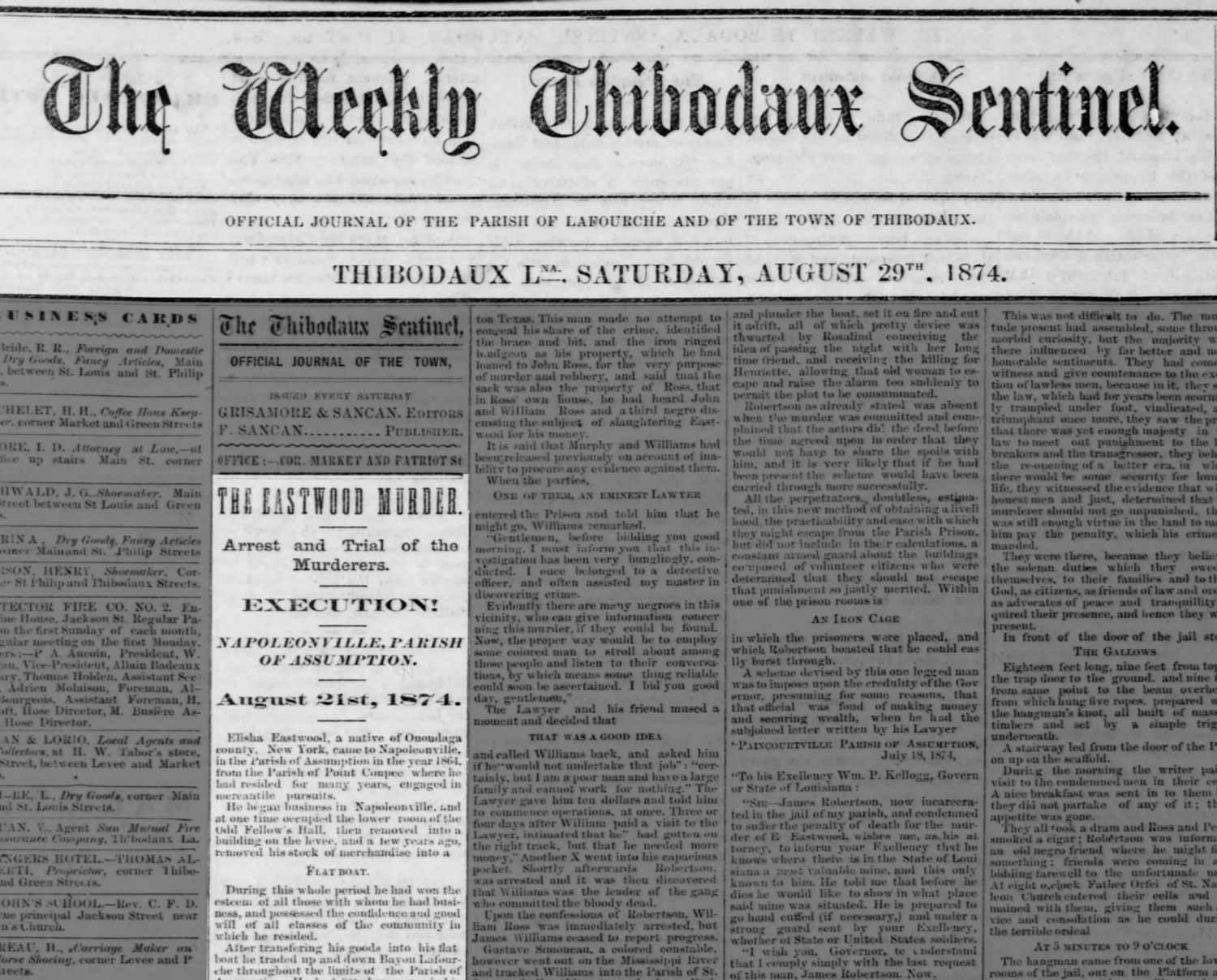 Murder has always been a part of Louisiana’s history. The 1887 Thibodaux Massacre was made famous by a book published in 2016 by John DeSantis.